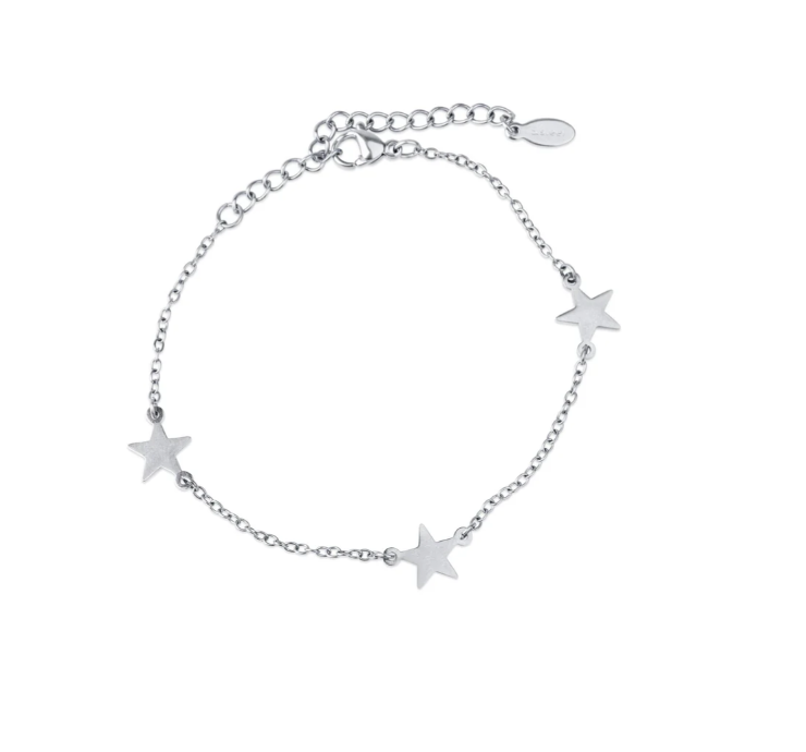Zartes Edelstahlarmband mit funkelnden Sternendetails – wasserfest, anlaufgeschützt und in Silber erhältlich.